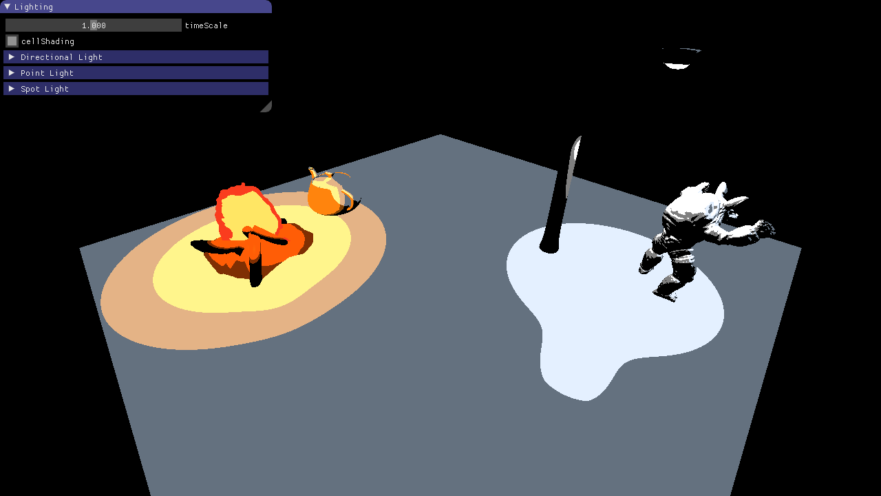 Once you are done, you should be able to see bonfire, teapot, lantern and armadillo lit by a directional light source.