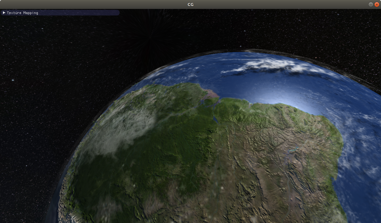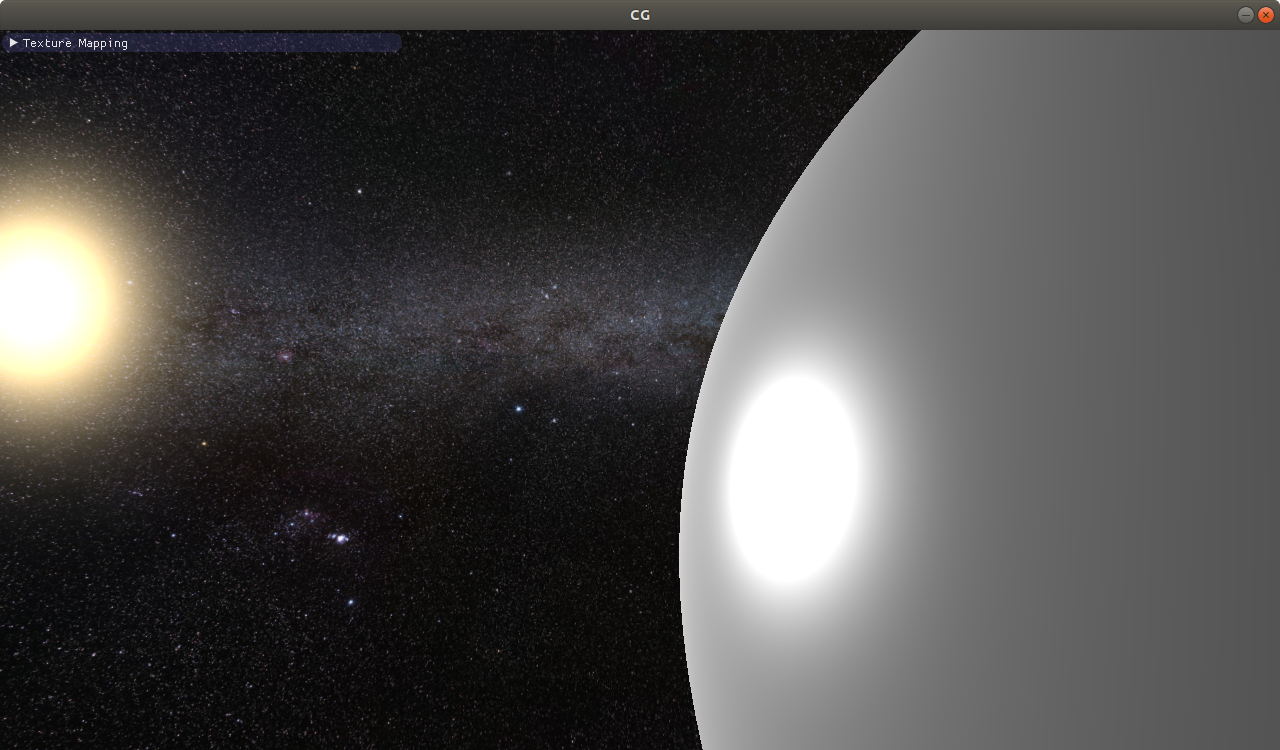 The specular coefficient (not the exponent!) for each earth surface point is stored in the 'earthSpec' texture. Read this value and use it in the lighting computation. You can better observe the effect of the varying specular intensity when disabling color. After this subtask the scene should look like this: